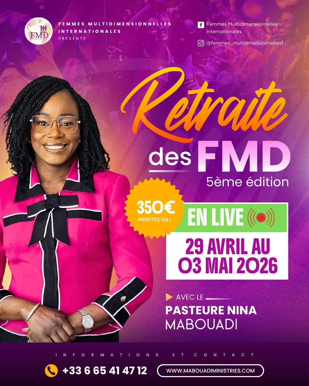 ✨ Participez à la 5ème Edition de la Retraite Internationale des Femmes Multidimensionnelles “En Live”.